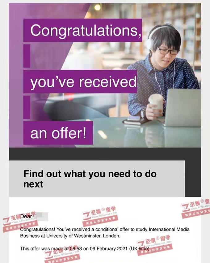 录取结果:The University of Westminster,International Media Business MA威斯敏斯特大学国际媒体商业硕士录取
