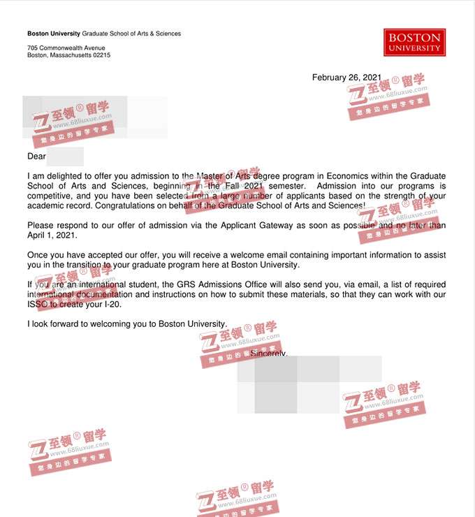 录取结果:BU,Master of Arts in Economics波士顿大学经济学硕士录取