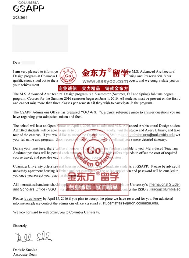 虽然最终TOEFL成绩没有达到预想的分数,只有100分,GRE成绩也不高,但是在职业规划老师的一步步指导下,学生尽可能的去尽最大努力,争取一切机会,去提升自己,展现自己的最大优势。最终录取了哥伦比亚大学,当然还有其他学校的offer(包括位于纽约市的普瑞特艺术学院等)。梦想成真的同时,也证明了自己,成就了自己。出国留学最重要的是找到最适合自己的学校,L同学做到了,相信他在以后的道路上也会这样努力,成就自己的一片天!