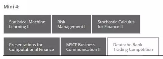 MSCF的选课较为fixed,只有最后两个mini有一定的选择余地。不过值得注意的是,这份相对固定的curriculum是完全针对MSCF的学生开设的,所以会非常有针对性,学的东西往往非常使用。如果选择了匹兹堡校区,也是会有大量的机会选择CMU的其他课程的。