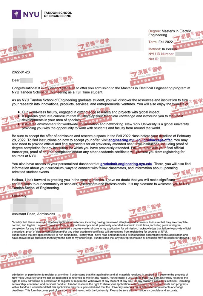 录取结果:New York University,Electrical Engineering, M.S.纽约大学EE硕士录取
