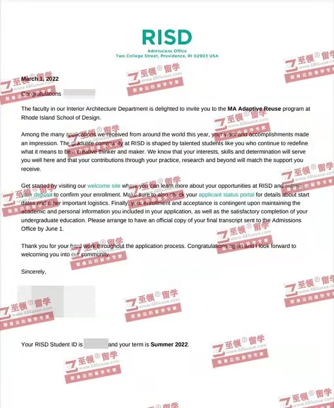 录取结果:Rhode Island School of Design,MA Adaptive Reuse 罗德岛设计学院室内设计硕士录取+$5000