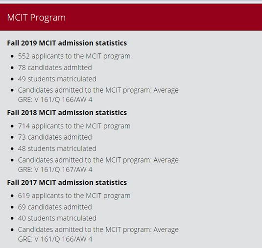 简历、PS、两封推荐信、成绩单、GRE、TOEFL建议100分以上,IELTS建议7.5以上,在美国或者英语语言国家拿到学士学位的学生可以免TOEFL和IELTS。近三年的招生情况如下