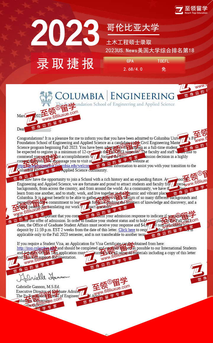 录取结果:Columbia University,MS in civil engineering 哥伦比亚大学土木工程硕士录取