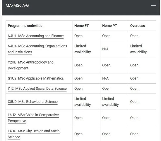 LSE最人性化的地方就是会在官网上随时更新所有硕士专业的录取情况,以避免同学们错过重要信息。