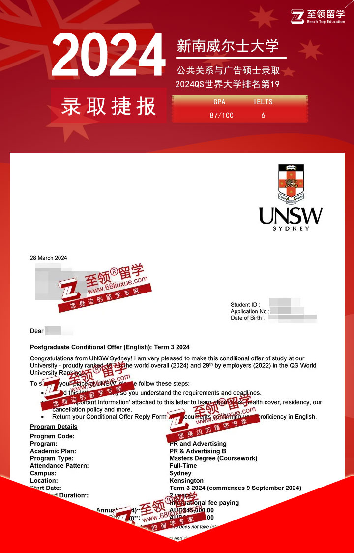 录取结果:The University of New South Wales,Master of Public Relations & Advertising新南威尔士大学公共关系与广告硕士录取