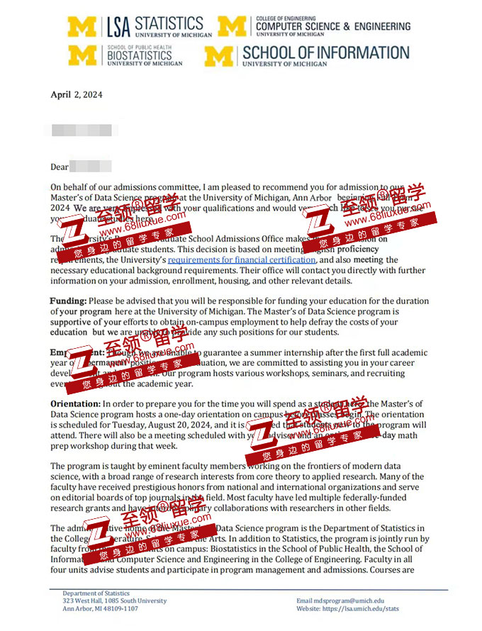录取结果:UMich, MS in Data Science密歇根大学数据科学硕士录取