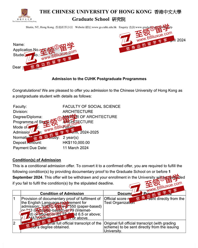 录取结果:The Chinese University of Hong Kong,Master of Architecture 香港中文大学建筑学硕士录取
