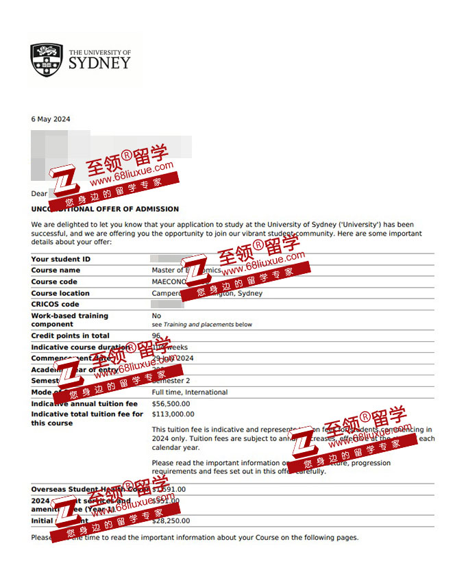 录取结果:University of Sydney,Master of Economics悉尼大学经济学硕士录取