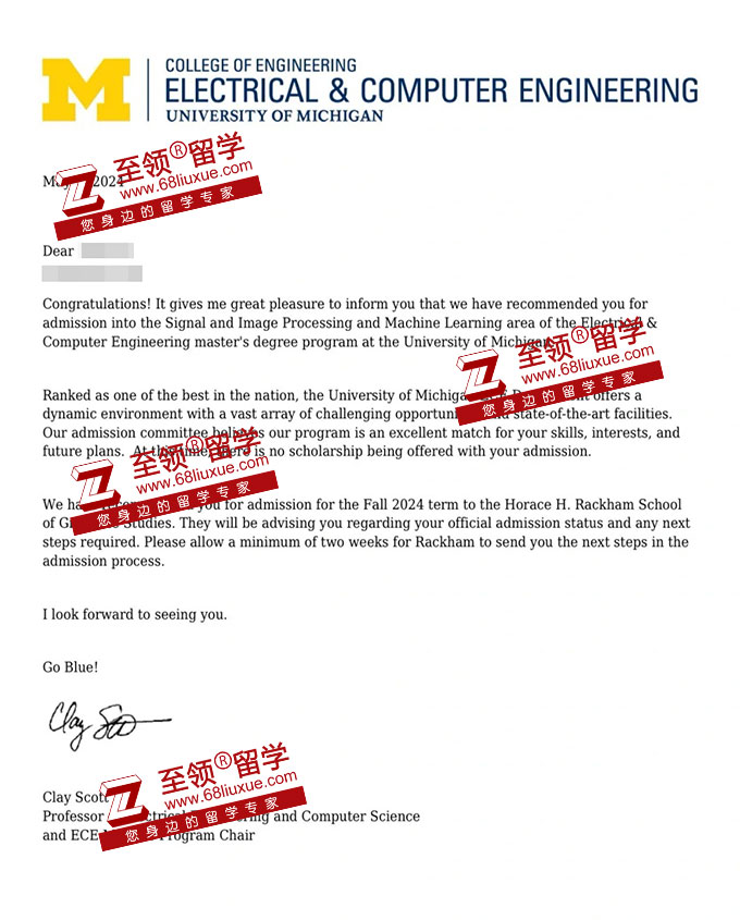 录取结果:University of Michigan, MS in Electrical & Computer Engineering 密歇根大学电子工程硕士录取