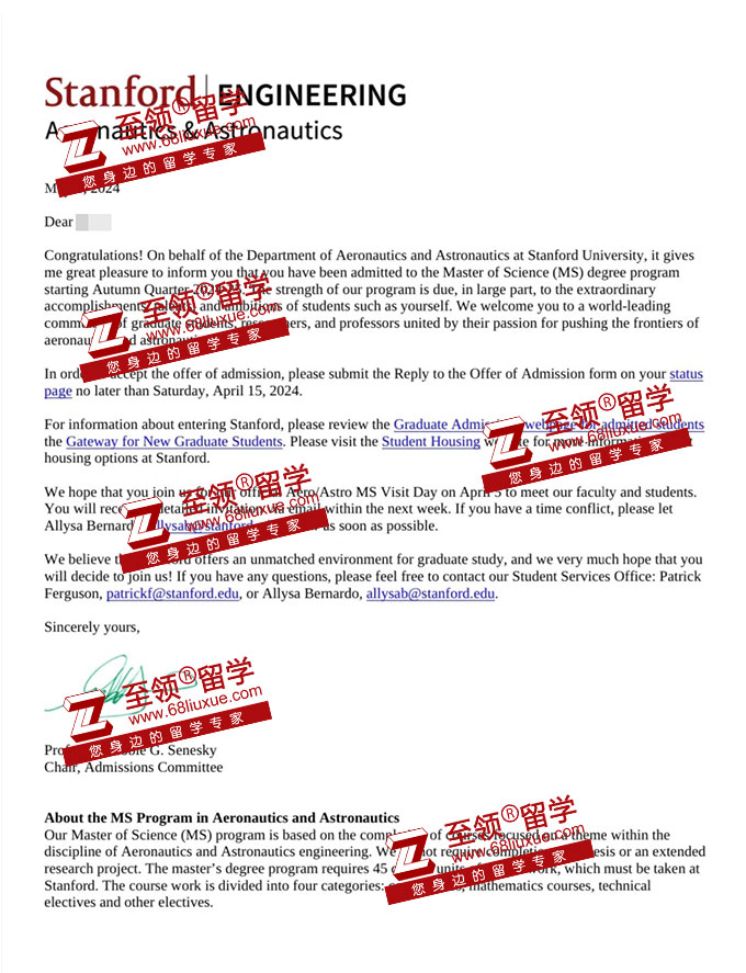 录取结果:Stanford University,Master of Aeronautics & Astronautics 斯坦福大学航空航天工程硕士录取