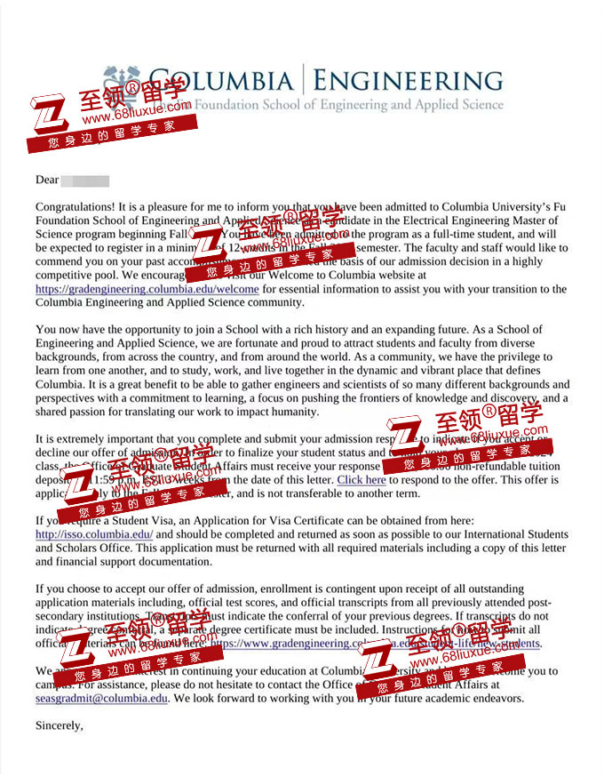 录取结果:Columbia University ,MS in Electrical Engineering 哥伦比亚大学电子工程硕士录取