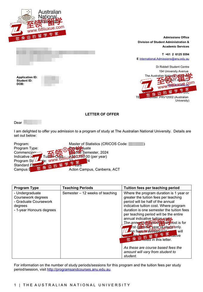 录取结果:ANU,Master of Statistics 澳洲国立大学统计硕士录取