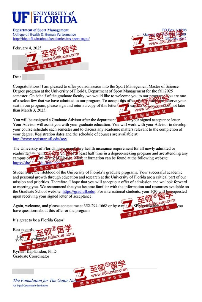 录取结果:佛罗里达大学体育管理硕士录取