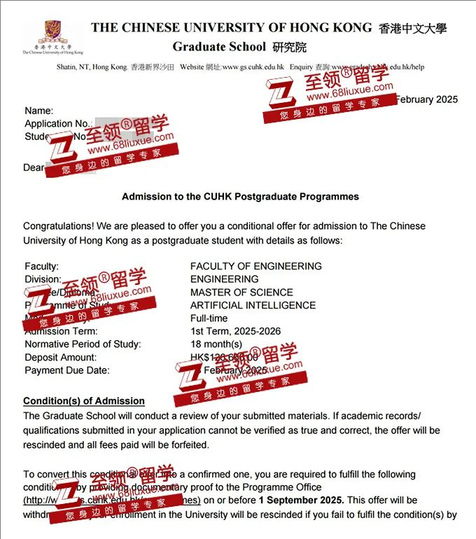 在至领留学申请团队的帮助下,T同学成功申请到港中文OFFER。
