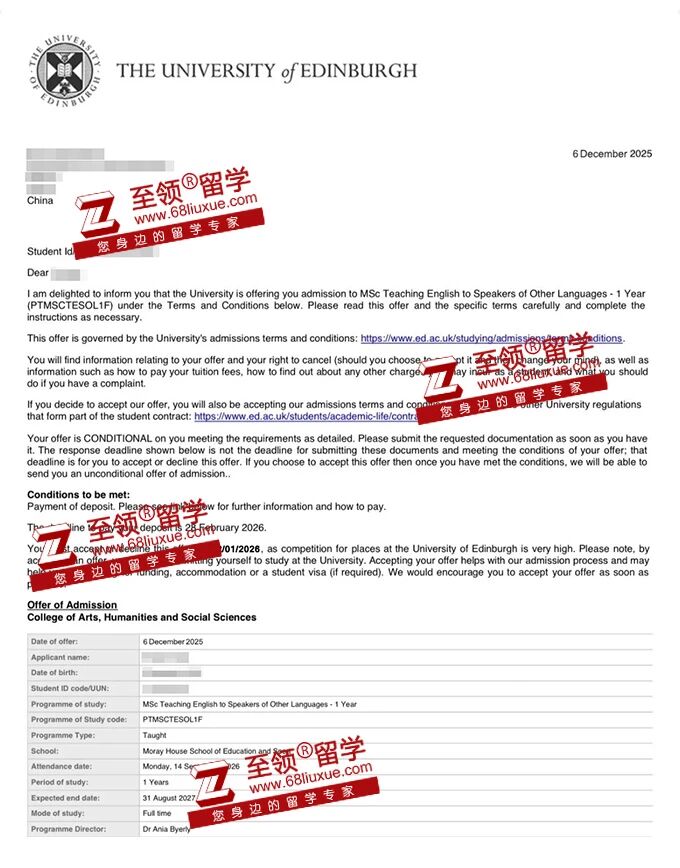 A同学拥有较长时间的培训机构教学经验,文书老师深度挖掘其教学案例,通过描述她如何针对不同语言水平学生设计分层教学方案,最终显著提升课堂参与度,展现其从实践到理论的升华能力,突出"问题解决-反思成长"的闭环逻辑。在至领留学申请团队的全程护航下,A同学成功斩获爱丁堡大学TESOL硕士录取,实现从语言学习者到教育践行者的华丽转身。