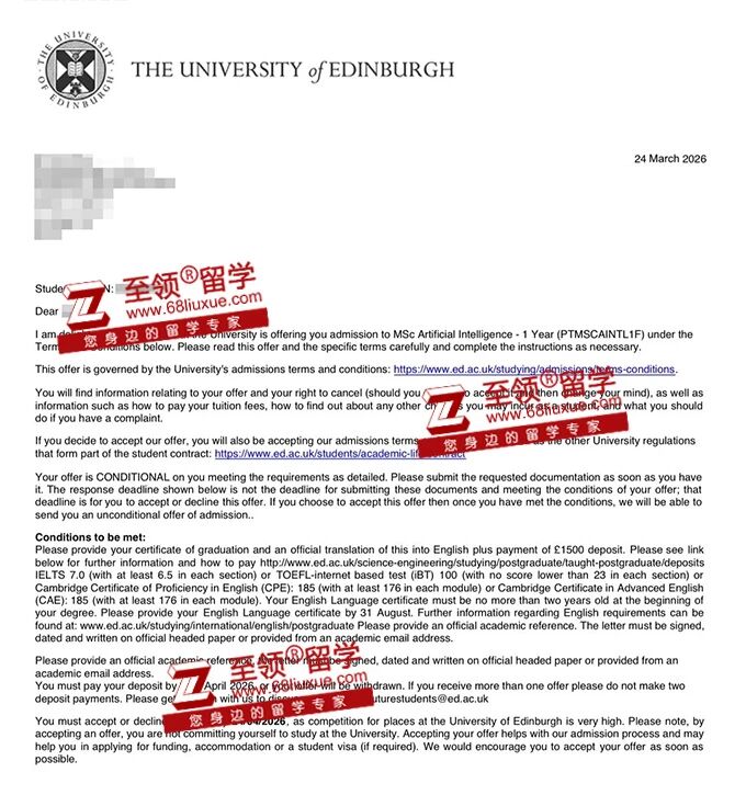 录取结果:爱丁堡大学,人工智能硕士录取