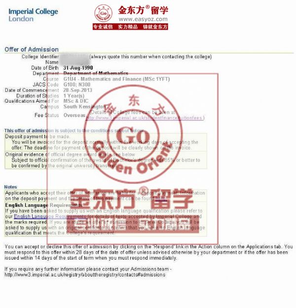 由于IC的金融数学专业是欧洲开设最早、师资力量最雄厚、并且依靠和伦敦地区众多投行建立的良好合作关系为学生提供一定数量的实习机会,因此也是英国最热门的金融数学申请专业,申请难度也是最大的。虽然学校并没有要求申请人必须考GRE,但很多被录取的国际学生都有着非常出色的GRE成绩,同时雅思分数基本会达到7分(托福分数达到100分)。