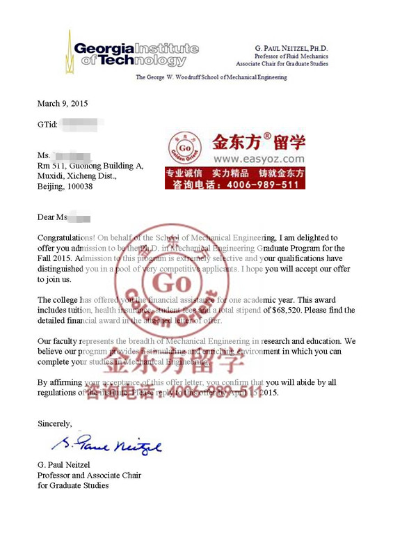 在做了上述分析后,我们锁定了纳米材料这个研究领域,L同学在孙老师的指导下开始寻求各种项目经历,金东方留学团队开始查相应的教授信息。GaTech这种工科大牛校,在ME下的Micro and Nano Engineering研究领域,就有几十位教授,因此有选择的、分批的套磁,为W同学赢得了面试机会,并最终锁定了全奖。