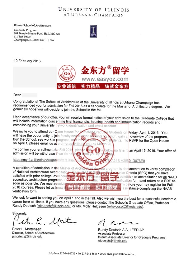 伊利诺伊香槟分校建筑学专业硕士申请成功
