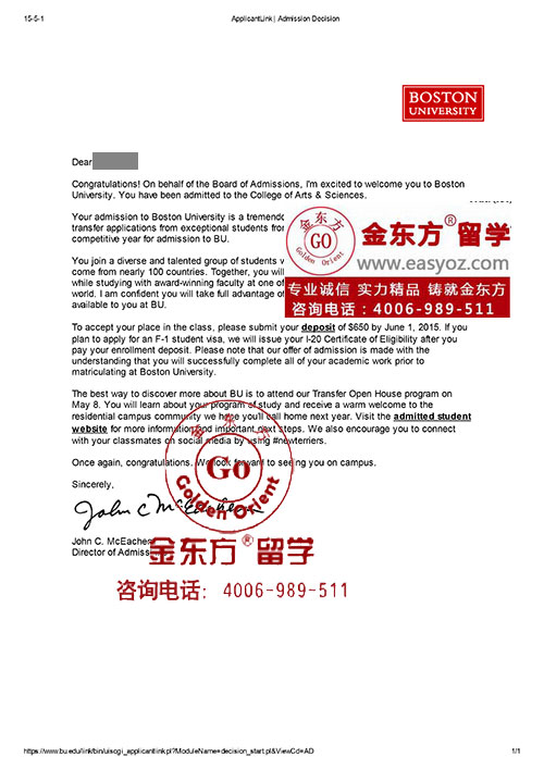 在整个留学过程中,学生非常的配合。她温柔体贴,灵活乖巧,说话时总是带着甜甜的微笑。不仅积极参与到留学过程中,还非常懂得理解和体贴他人。经常会给申请老师发一些问候信息。申请老师在学生的申请每一步也是细心加专业。从授课,文书,申校到签证,申请师每一步都精益求精。最终,学生被波士顿大学经济学本科转学录取。