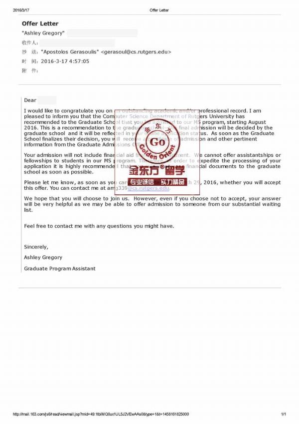 录取结果:Rutgers University(罗格斯大学),MS in Computer Science