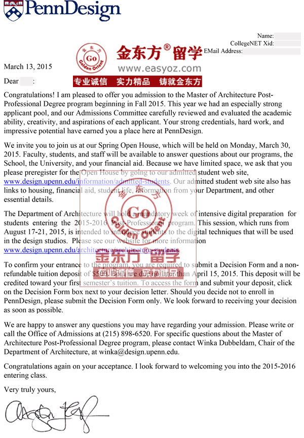 3.14日一大早晨打开邮箱,很惊喜的收到九位同学的宾大录取offer!金东方客户所有建筑学客户同时被宾大这种超牛学校建筑学录取是相当令人震撼的,也是我们没有想到过的结果。宾大建筑系还是中国建筑系教育的始祖!