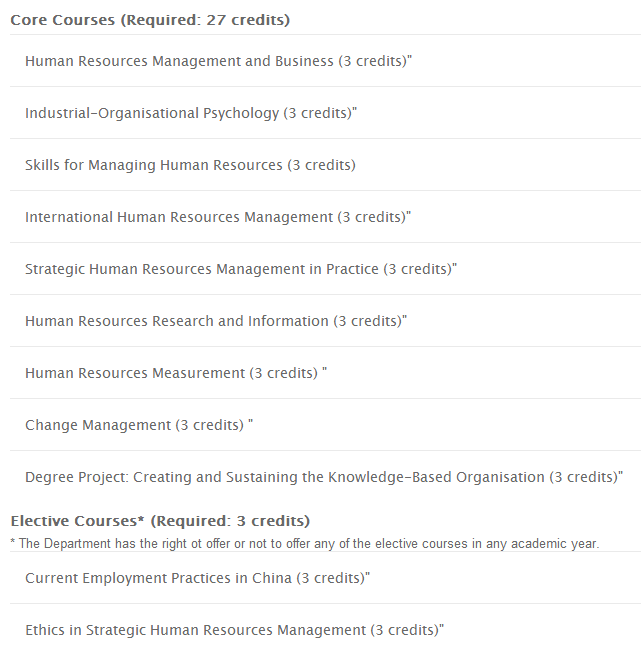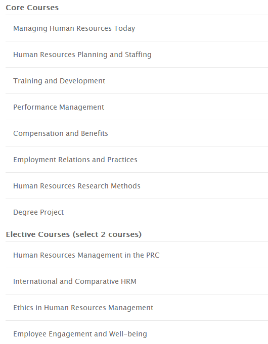 项目一:Master of Science in Strategic Human Resource Management