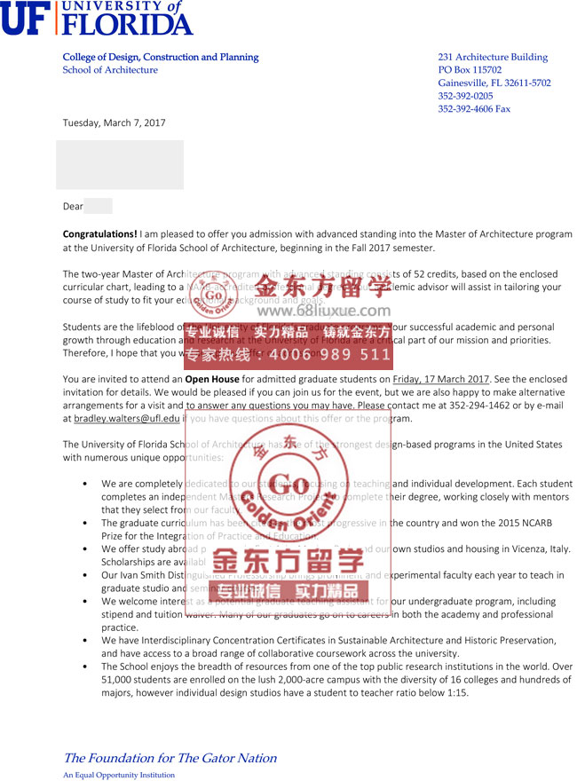 录取结果:University of Florida(佛罗里达大学), Master of Architecture 建筑学硕士