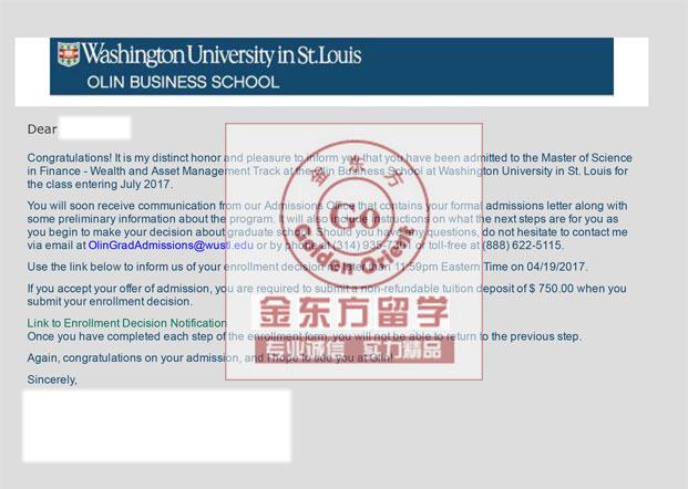 录取结果:圣路易斯华盛顿大学,金融学硕士