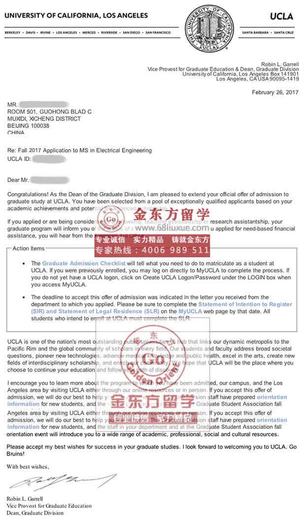 在金东方留学团队与李同学共同的努力配合下,最终获得了UCLA电子工程硕士的录取,真是可喜可贺!