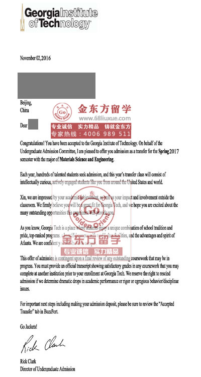 录取结果:佐治亚理工学院,村料科学与工程专业本科