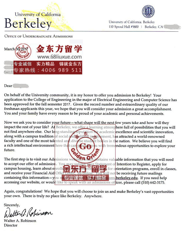 一个成绩优秀的学生,加上一份精心包装创作的文书,胡同学终于获得了伯克利EE专业的青睐。回想这一起走过的路程,真是心中有太多的感动,也祝愿胡同学能在美国的大学里学有所成,实现自己的愿望。