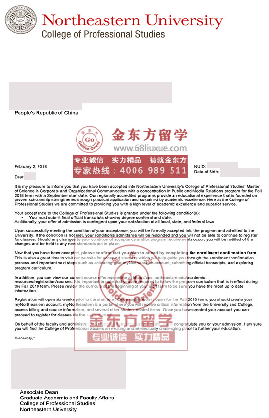 录取结果:Northeastern University东北大学,MS in Corporate and Organizational Communication公司与组织传播硕士