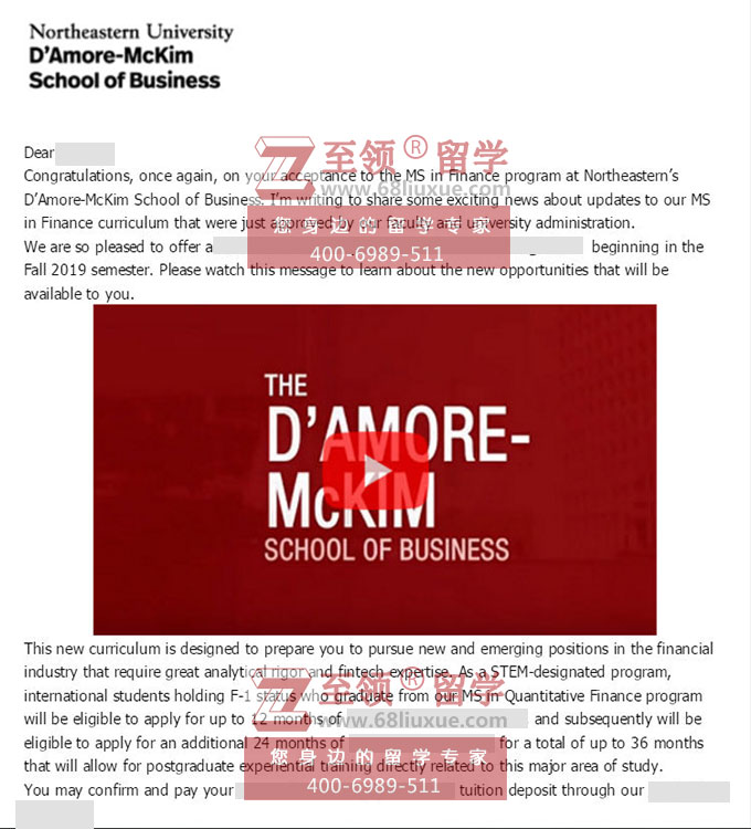 录取结果:Northeastern University (东北大学),Master of Science in Finance金融学硕士