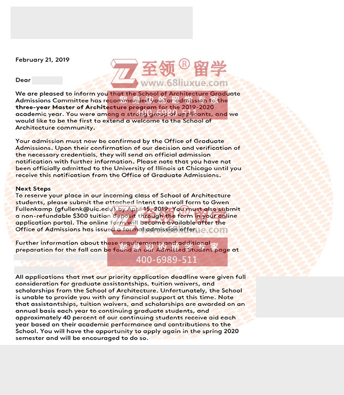 录取结果: University of Illinois at Chicago (UIC)伊利诺伊大学芝加哥分校,Master of Architecture program 建筑学硕士
