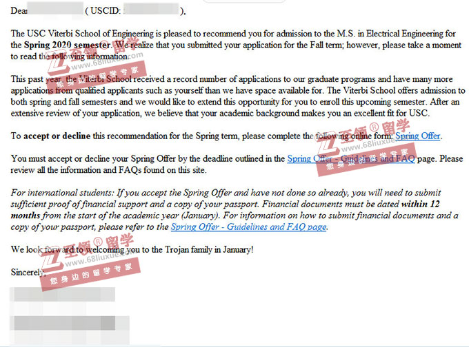 录取结果:University of Southern California ,M.S. in Electrical Engineering 南加州大学电子机工程硕士