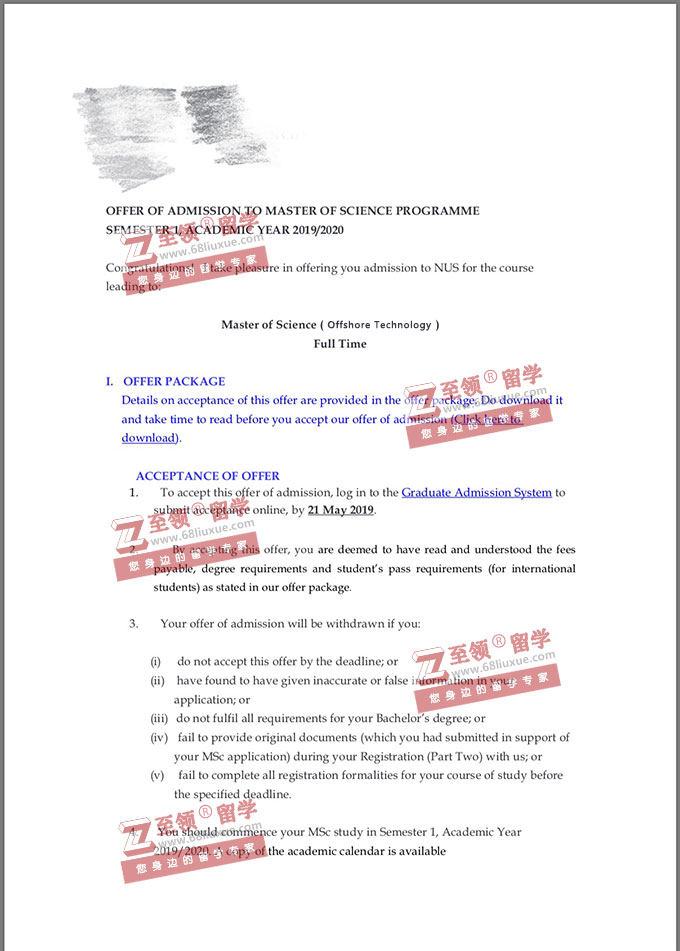 录取结果:新加坡国立大学,海洋技术硕士录取