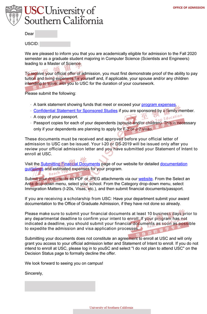在至领留学老师的帮助下,Z同学终获得南加州大学计算机专业录取。