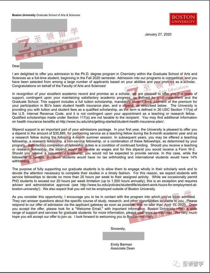 录取结果:Boston University,PhD in Chemistry波士顿大学化学博士,免学费+奖学金$35885录取