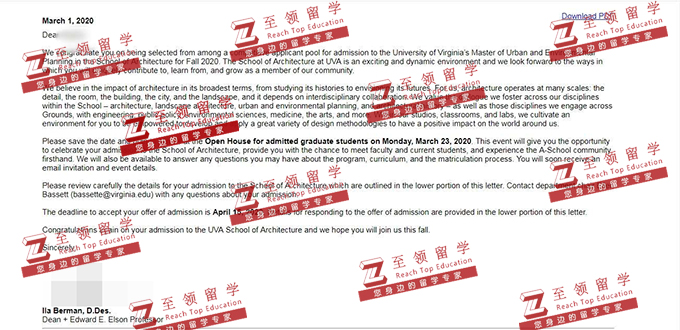 录取结果:University of Virginia,Master of Urban and Environmental Planning弗吉尼亚大学城市与环境规划硕士录取