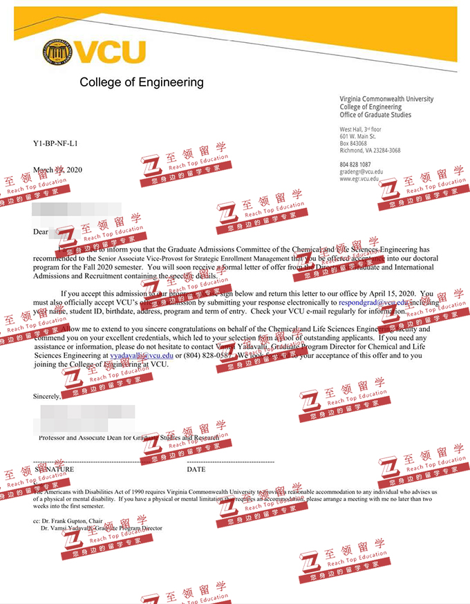 录取结果:Virginia Commonwealth University,PhD in Chemistry弗吉尼亚联邦大学化学PHD