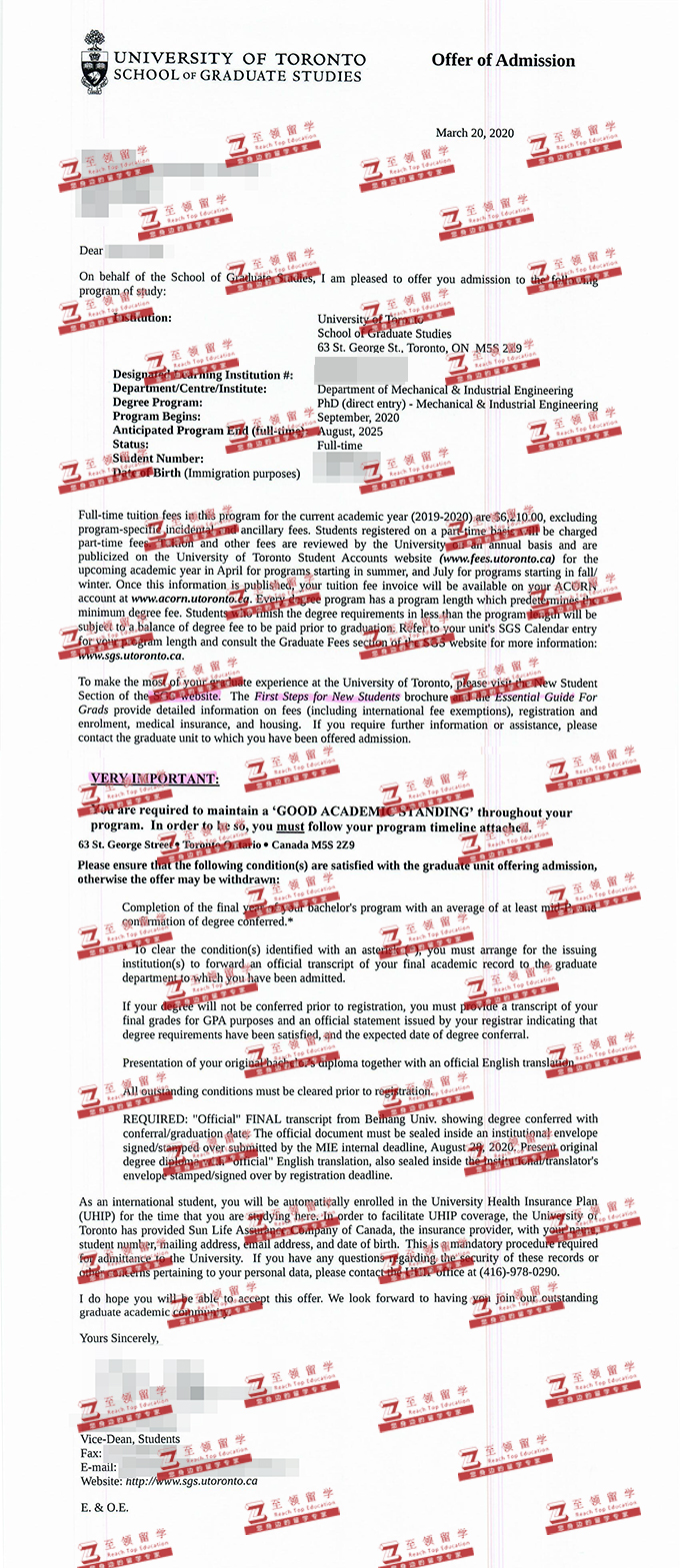 录取结果:University of Toronto,PhD (Direct entry)- Mechanical & Industrial Engineering多伦多大学机械与工业工程博士录取,奖学金$19, 500/年