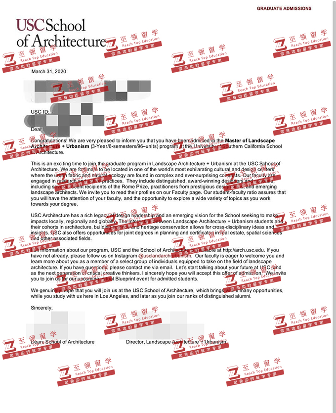 录取结果:USC,Master of Landscape Architecture + Urbanism南加州大学风景园林+城市化硕士录取