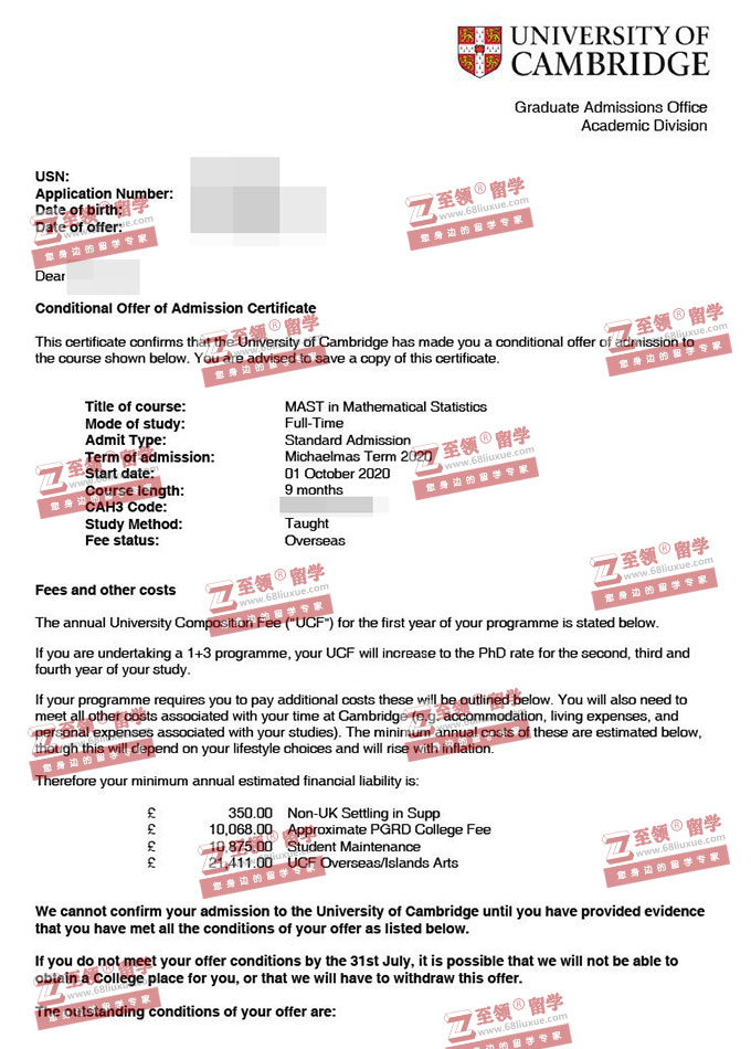 录取结果:Cambridge University,MASt in Mathematical Statistics剑桥大学数学统计硕士录取