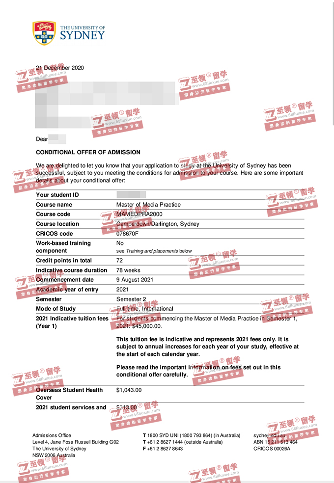 录取结果:The University of Sydney,Master of Media Practice悉尼大学传媒实践硕士录取