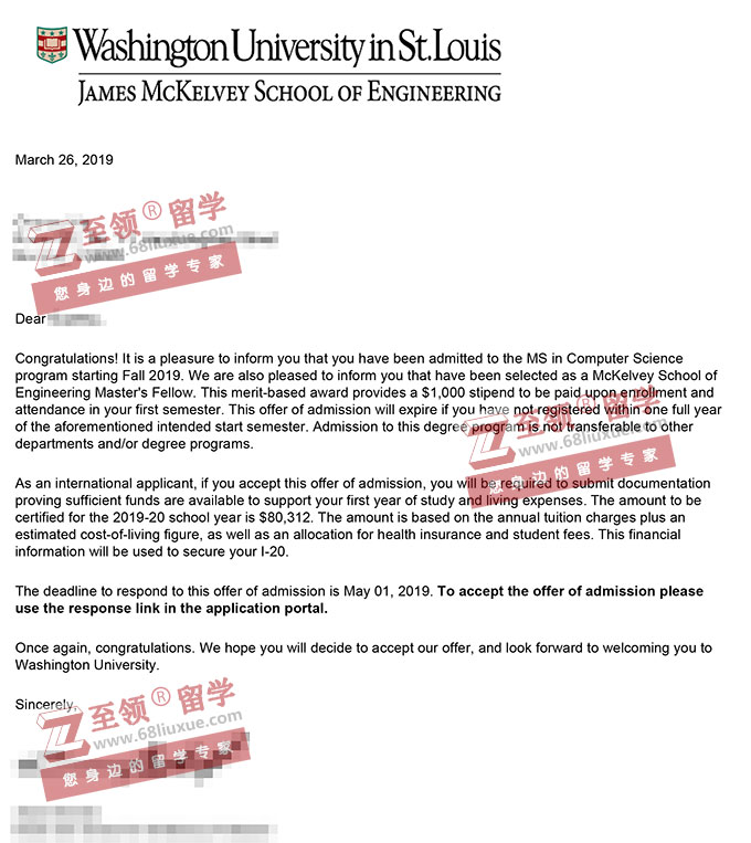 录取结果:Washington University in St. Louis 圣路易斯华盛顿大学,MS in Computer Science 计算机硕士,奖学金$1,000